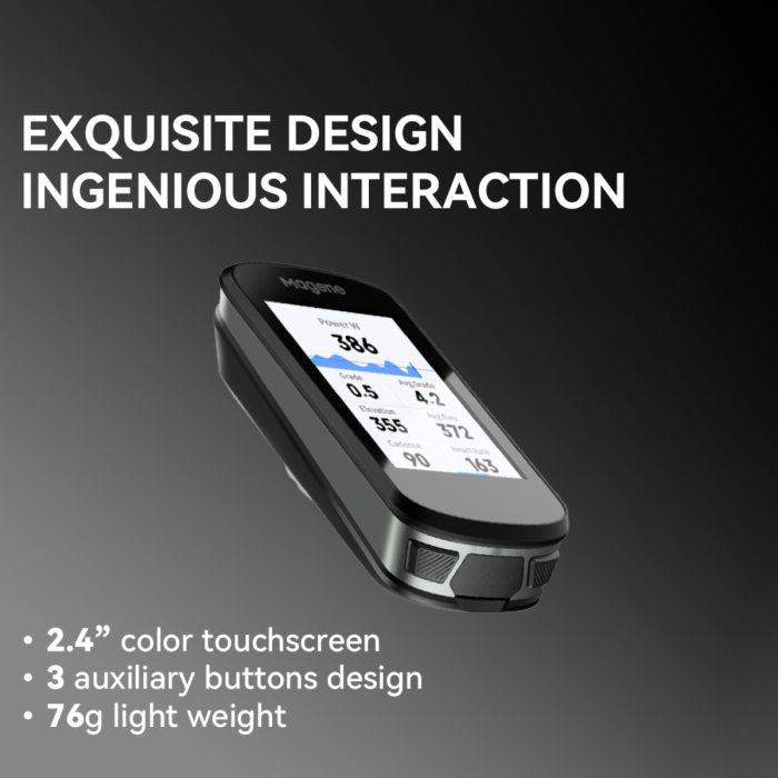 6,1 cm-es színes érintőkijelzővel rendelkezik, színes térképes navigációval és letérésjelzéssel, valamint zökkenőmentesen integrálható a Magene különféle eszközeivel.